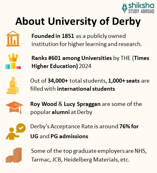 - Some of the top alumni organizations at University of Derby include Rolls Royce, NHS, Tarmac, JCB, Aggregate Industries, Heidelberg Materials, Breedon Group, EY, Microsoft, etc.