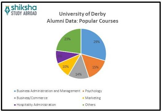 - The top alumni course preferences at University of Derby are Business Administration, Management, Psychology, Business, Commerce, Marketing, Hospitality Administration, Design and Visual Communication, etc.