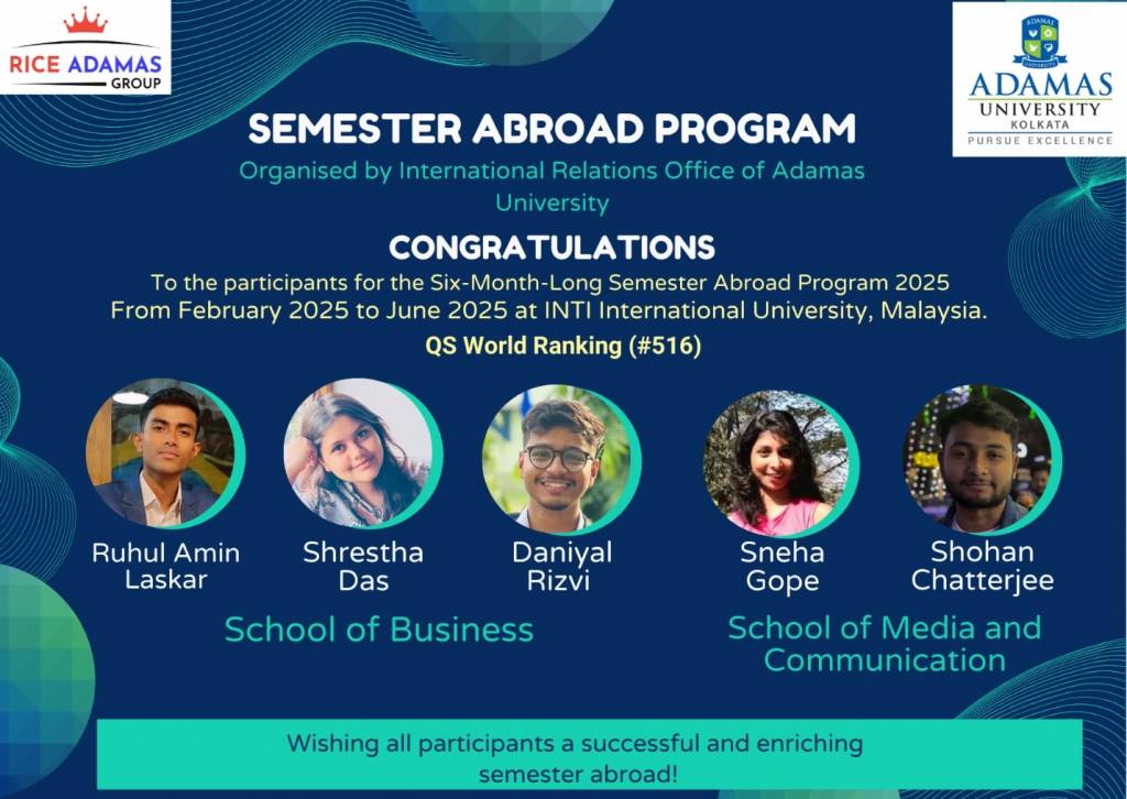 March 14, 2024: Adamas University has maintained a prominent role in the global advancement of higher education. As part of its ongoing internationalization strategy, Prof (Dr) Shauli Mukherjee, Professor & Dean of the School of Education and Dean of International Relations, alongside Saumya Subhra Roy, Director of University Operations, represented Adamas University in an Academic Expedition to Malaysia. On March 4th, our senior representatives visited UCSI University and Universiti Kuala Lumpur, Malaysia, engaging in fruitful discussions with senior officials from both institutions regarding potential student and faculty exchange programs, joint research endeavors, and other collaborative initiatives. We eagerly anticipate the development of productive joint ventures and collaborative activities.