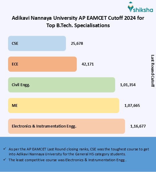 The 2024 cutoff information has not been released, therefore the 2023 cutoff is the latest as of now and it has been concluded. The Adikavi Nannaya University accepts the Andhra Pradesh EAPCET exam scores for the admissions to the B.Tech courses and APICET for the MBA courses. The cutoff of the Andh