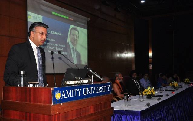 Also present on the occasion were, Mr. Amol Chauhan, Senior Vice President, Amity Capital Ventures, Ms. Mehtaab Chauhan, Trustee RBEF, Ms. Ridhima Chauhan, Trustee RBEF, Dr.Sanjeev Bansal, Additional Pro Vice Chancellor Amity University Uttar Pradesh, along with the HOIs, faculty, staff and students of Amity.