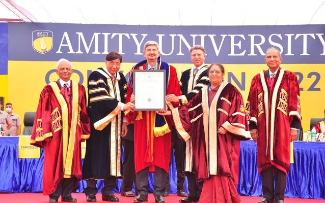 Dr. Prathap C. Reddy, founder and chairman of the Apollo Hospitals Group, graciously accepted the Honorary Doctorate Degree from Amity University and declared, "Amity is without a doubt one of the top universities in the world, under the visionary leadership of Dr. Ashok Chauhan. Amity continues to produce outstanding leaders, scientists, and businesspeople who have elevated the reputation of the nation on a global scale. The exceptional education, skills, and training that Amity offers its students, along with their tremendous inner power, enable them to do the seemingly impossible. My Honorary Doctorate Degree from Amity inspires me to work harder and accomplish more. He urged the students to seize the chance, succeed in their different disciplines, and have a profound impact on society.”