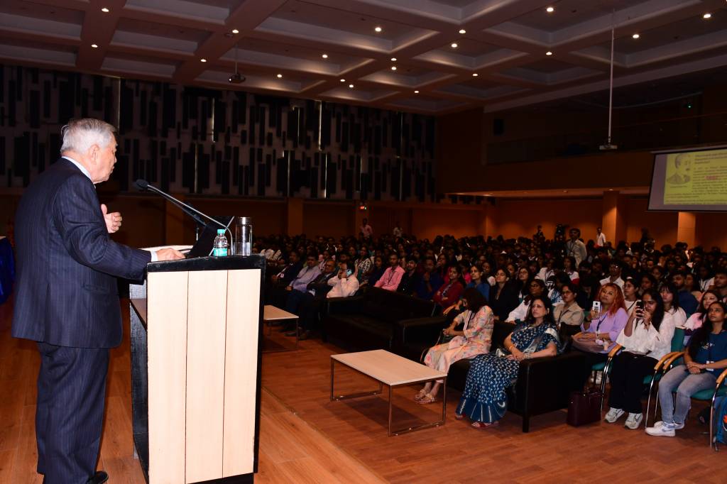Addressing the students, Mr. Ram Badan Singh, Deputy Commissioner of Police, Noida, averred, “Drug addiction is increasing rapidly amongst the youth of our country and they are destroying their invaluable lives by indulging in such activities. Developing a disciplined life along with healthy habits is extremely important and in order to develop a good habit, ninety days are required, after which it becomes a part of your lifestyle. When a person takes drugs, not only that particular person, but their whole family suffers, therefore, youngsters must be compassionate, understand the pain and suffering of others and care for their parents and society. Students must dream big and focus on their future goals instead of falling prey to drug addiction.” He urged the youth to become good human beings and responsible citizens since the future our country depends upon the youth, and they are the ones who will contribute to Viksit Bharat@2047.