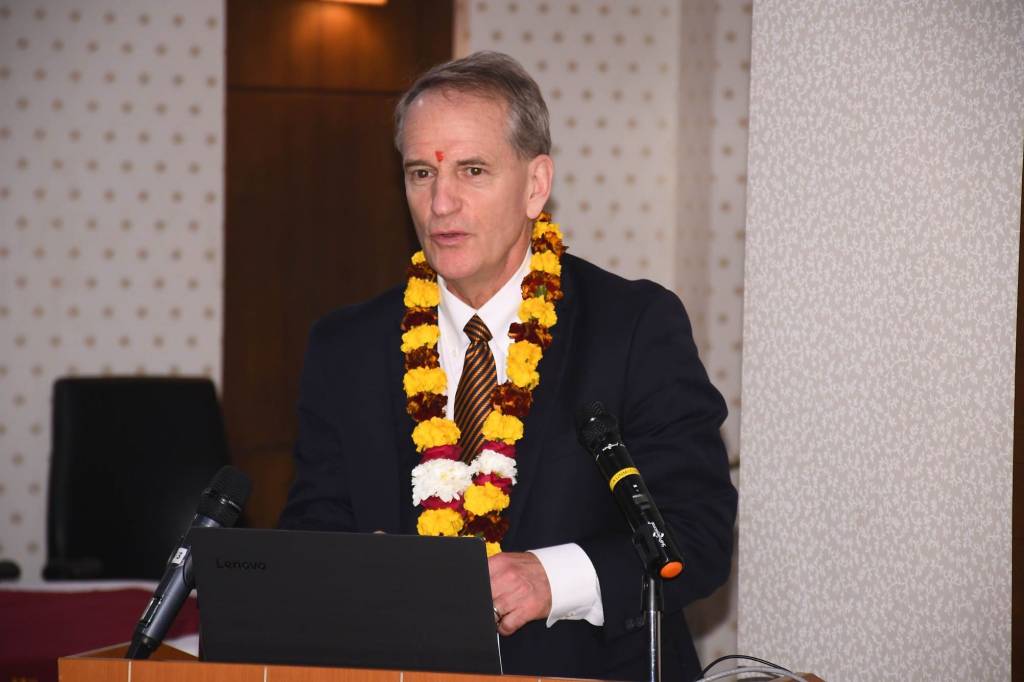 After the interaction, Lt Gen (Dr) SK Gadeock, AVSM (Retd), Director General Amity Institute of Defence and Strategic Studies(AIDSS) and Rear Admiral Alok Bhatnagar NM LoM(USA) (Retd), Deputy Director General – International Affairs Department (IAD), along with Amity student representative, Amlan Mishra felicitated the Hon’ble Secretary with traditional Indian gifts.