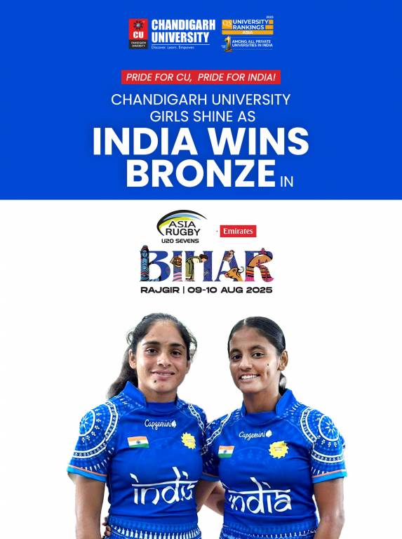 When both scholastic excellence and athletic brilliance are at stake, Chandigarh University (CU) is one of the top universities in India. CU recently brought the country and university into the limelight when two of its deserving students, namely, Bhumika Shukla (B.Sc., Indian U20 Rugby Team Captain) and Muskan Piploda (B.A., Indian U20 Rugby Team Player), navigated their way towards winning a bronze medal at the Asia Rugby Emirate U20 Sevens Championship, which was hosted in Rajgir.