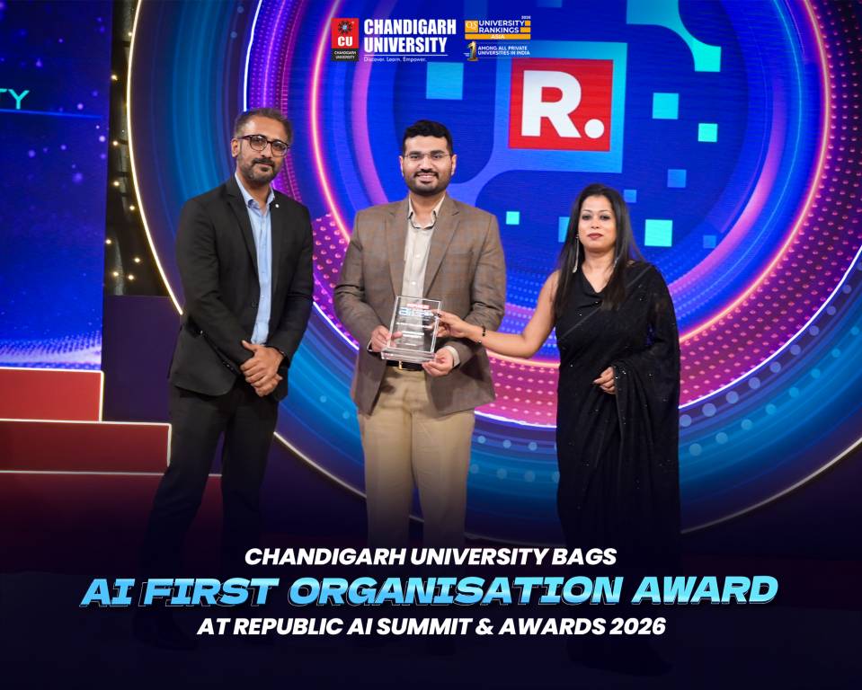 Republic Media honored Chandigarh University with the prestigious ‘AI-First Organisation’ award at the AI Summit & Awards 2026, which demonstrates the effort and contribution of CU for India’s higher education & technological landscape.