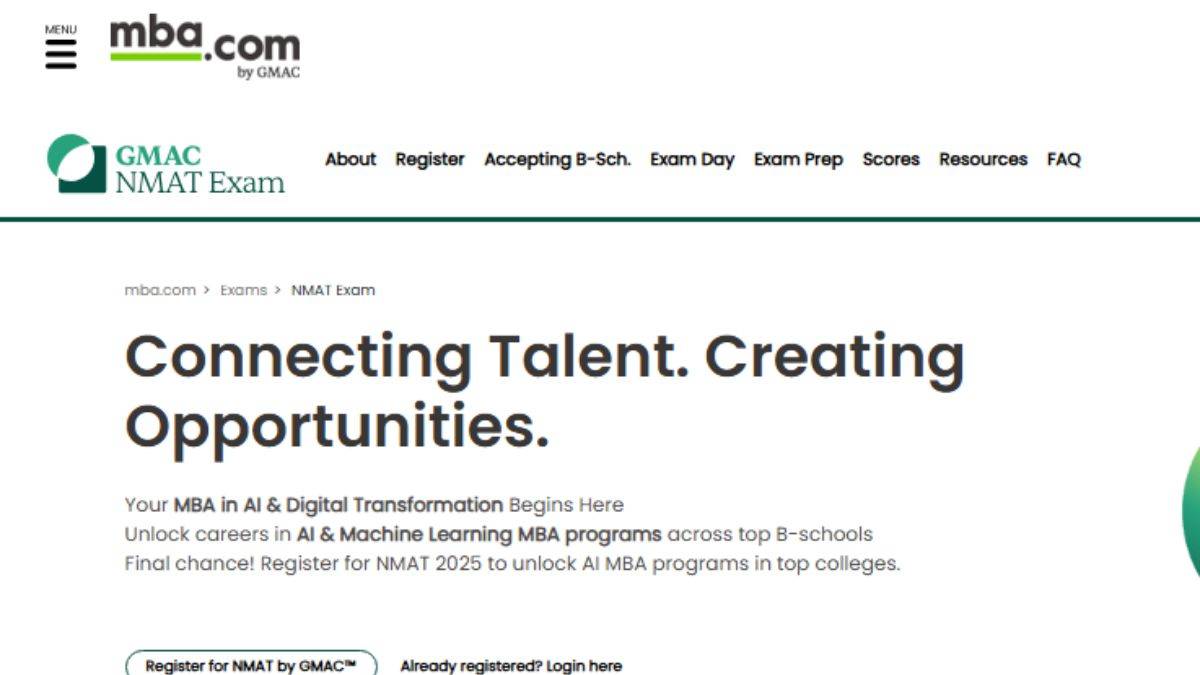 NMAT 2026: Graduate Management Admission Council (GMAC) will conduct NMAT within a test window of around 45 to 50 days. Candidates are allowed to appear for NMAT 2026 thrice within the test window. GMAC is expected to start NMAT 2026 registration in the first week of August. Reputed b-schools, like NMIMS, TAPMI, SP Jain, KJ Somaiya, among others accept NMAT scores for MBA admissions. Candidates find 108 questions in NMAT exam from three different sections. All questions in NMAT exam are objective type, to be answered within 120 minutes. GMAC will also have a sectional timelimit for all three sections of NMAT 2026 exam. Scroll down for more details on NMAT 2026 exam, including dates, eligibility conditions, application process, pattern, syllabus and preparation tips.