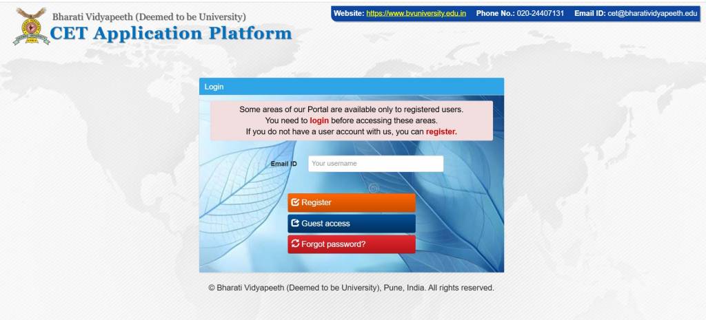 - Visit the official website of Bharatiya Vidyapeeth University and register as new users