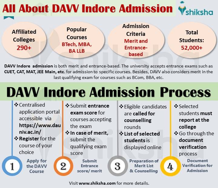 DAVV course admissions 2025 for some of its courses are either done based on merit or entrance exams. Check below the complete DAVV admission process: