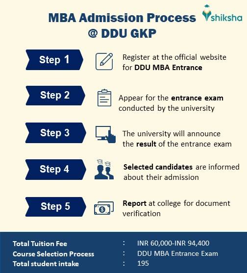 The MBA program at DDU Gorakhpur received accreditation from AICTE in 1999. In 2001, the department introduced its new facility, featuring modern amenities. This two-year course spans four semesters and covers various management disciplines like Marketing, Finance, and Human Resource Management. To keep students abreast of the latest trends, the department collaborates closely with industry partners, facilitating workshops, guest lectures, and industrial excursions. Students can check the infographics of MBA admission process at DDU below: