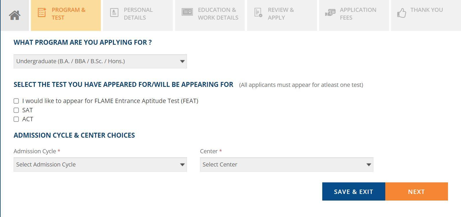 Selection criteria: FEAT/ SAT/ ACT, essay, online personal interview, past academic record, extracurricular activities/ achievements and statement of purpose