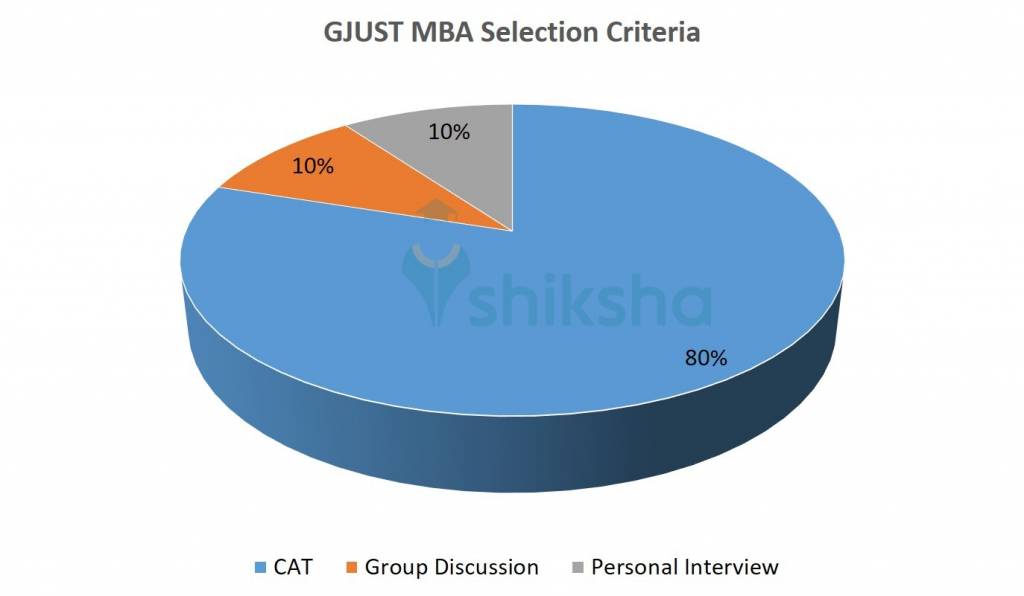 Selection criteria: GJUST Entrance Test/ CAT + GDPI