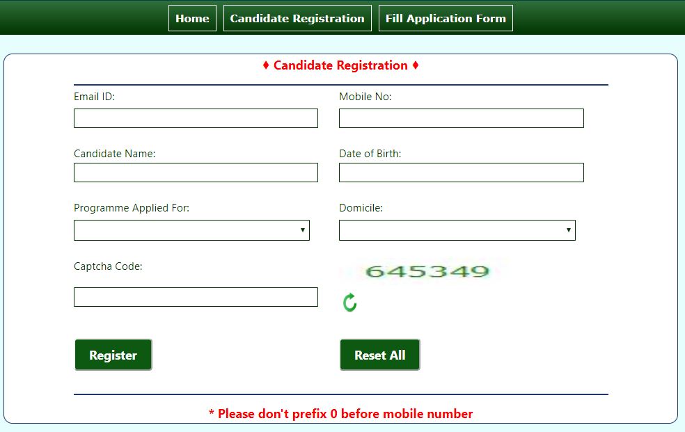 Students should fill in the information in their registration form like their number, email id, date of birth, domicile and the course they are going to apply for.