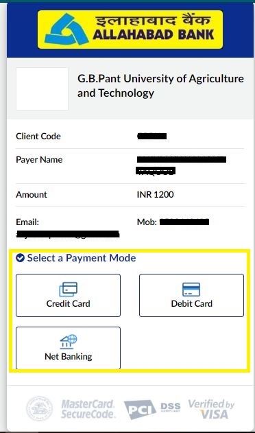Step 2: Pay Pantnagar University Entrance Exam Application Fee