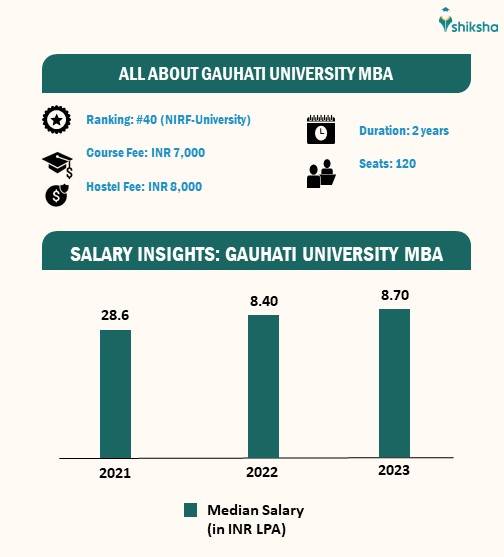 Guwahati University has not released any MBA specific placements statistics for the year 2023 or 2022. However, as per the NIRF 2022 report released by MHRD, Ministry of Education, the median salary for two-year PG courses at Gauhati University stood at INR 8.40 LPA which was 60% up compared to the median salary offered to two-year PG courses during placements 2021. However, as per the data collated from verified students’ reviews on Shiksha, the current and pass out MBA students mention that the salary packages offered to MBA students he ranges between INR 5 LPA and INR 10 LPA. Read more reviews on Guwahati University MBA here.