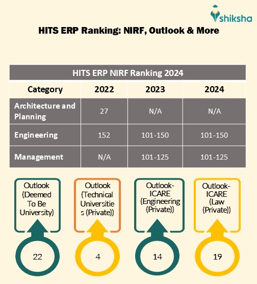 It has been recognized that the institute has displayed stability in trend in the 'University' category as compared to the ranking of preceding years. In 2024, HITS ERP's rank is #101, the same as last year's rank in the 'University' category by the NIRF ranking.