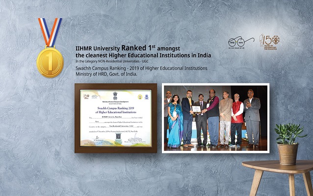 December 12, 2019: Ministry of Human Resource Development (MHRD) has declared IIHMR University, Jaipur Campus as India’s most cleanest higher educational institutions in the non-residential university category.