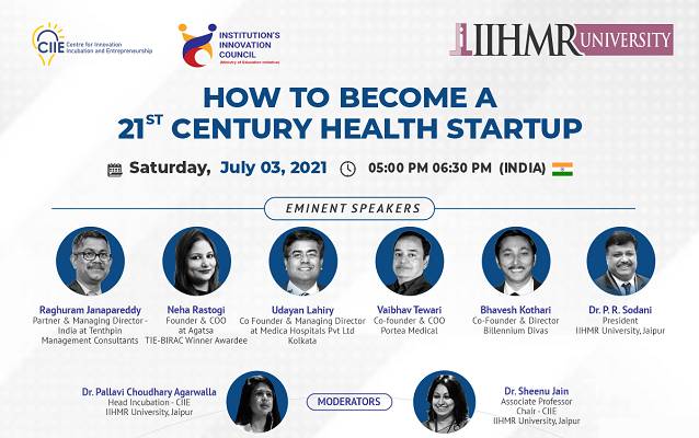 Considering the situation, the IIHMR University is organising a webinar on “How to become a 21st Century Health Startup” on July 3 between 5:00 pm and 6:00 pm.