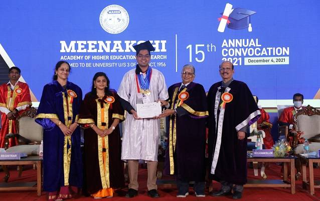 December 6, 2021: Meenakshi Academy of Higher Education and Research recently celebrated its 15th Annual Convocation at the majestic auditorium of the Meenakshi Medical College Hospital and Research Institute in Kanchipuram. The Honorable Chancellor of MAHER, Thiru A.N. Radhakrishnan, presided over the 15th Convocation, proclaimed the ceremony open, and conferred degrees on the eager graduates. Dr S.P. Thyagarajan, Chancellor of the Avinashilingam Institute for Home Sciences and Higher Education for Women in Coimbatore, honoured the event as the chief guest.