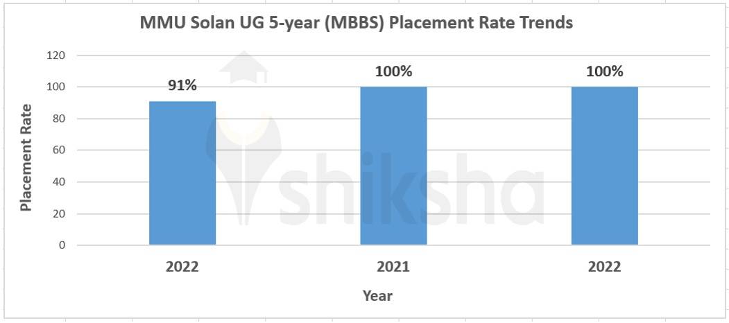 An improving trend was witnessed in the placement rate recorded over the past three years during MMU Solan UG 5-year (MBBS) placements, which is presented below: