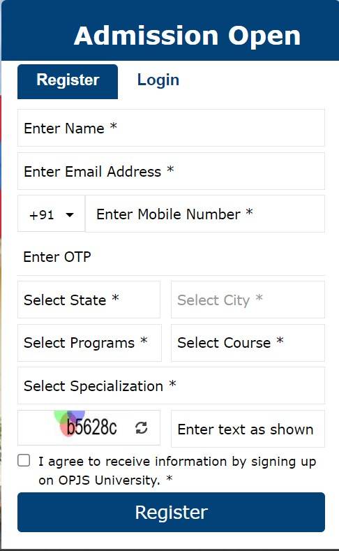 OPJS University applications usually release in February every year. Currently, the applications are open for all OPJS courses. Candidates can apply online for any of the preferred course. The mode of application is online for all courses. Candidates need to fill out the application form along with the specified documents. Aspirants meeting the eligibility criteria also need to pay a non-refundable application fee.