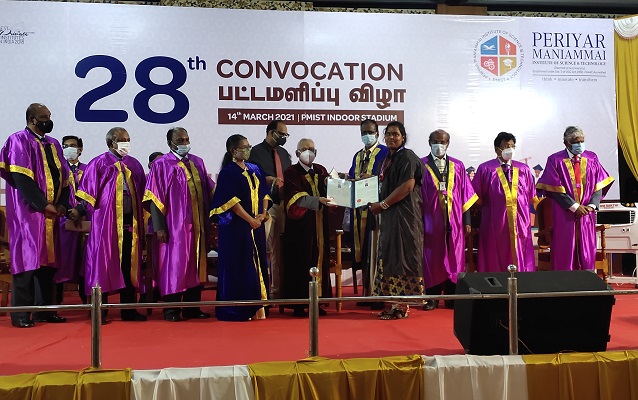 March 14, 2021: Tamil Nadu based one of the renowned science and engineering institutes, Periyar Maniammai Institute of Science and Technology (Deemed to be University) hosted the 28th convocation ceremony today.