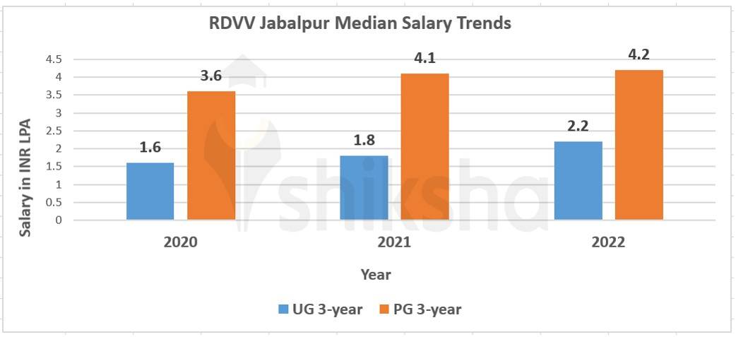 RDVV Jabalpur average package data is not released. However, according to RDVV Jabalpur NIRF report 2023, the course-wise median package offered during RDVV Jabalpur placements 2022 is presented below: