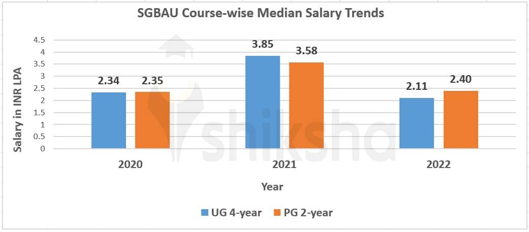 SGBAU average package data is not released. Nevertheless, according to SGBAU NIRF report 2023, the course-wise median package offered during SGBAU placements 2022 is presented below:
