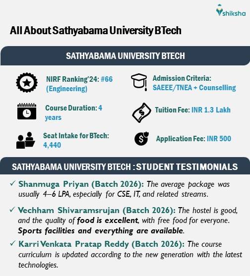 Sathyabama Institute of Science and Technology BE/BTech Courses & Fees 2025: Admission (Open), Eligibility Criteria