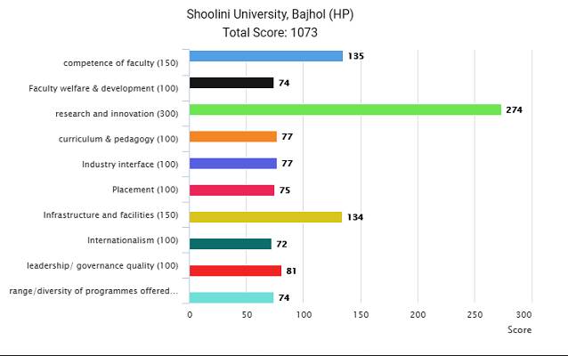 Shoolini University was ranked 19th out of the 100 leading institutions across the country. In Physical Sciences, it has been ranked 53rd and 73rd in all other subjects across country.