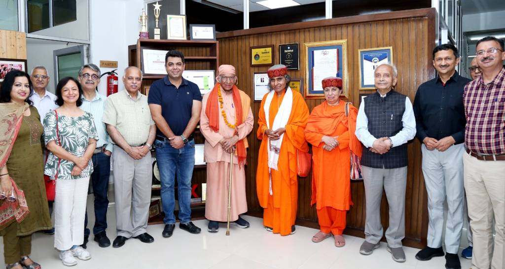 Swamiji also dedicated the Bhagavad Geeta, a large sacred text, to the Yogananda Centre for Theology at Shoolini University. The occasion was attended by Prof. Prem Kumar Khosla, Chancellor and Patron of the Yogananda Centre for Theology, Mr Vivek Atray, Chairman of the Yogananda Centre for Theology, and other delegations, students, faculty members, and YSS followers.