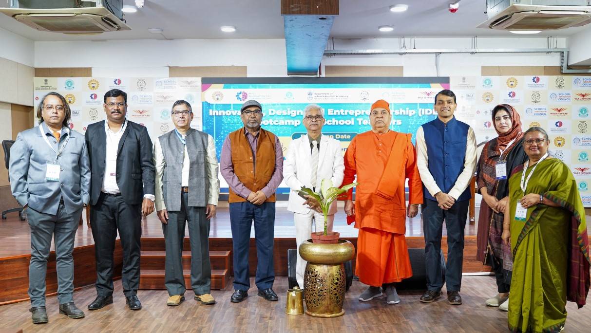 December 6, 2024: A transformative two-day Innovation, Design, and Entrepreneurship Boot Camp, organized by the Ministry of Education, Government of India, was hosted at Sister Nivedita University (SNU) to inspire school principals and teachers to foster innovation in education. The event was inaugurated by a panel of distinguished dignitaries, including Prof. Dhrubojyoti Chattopadhyay, Vice Chancellor of SNU; Swami Vishokananda ji from Ramakrishna Mission Vivek Tirtha; Mr. Pradip Kr Das of MSME; Mr. Yogesh D Brahmankar, Innovation Director, Ministry of Education; and Dr. Irfana Rashid, an experienced trainer from the Wadhwani Foundation.