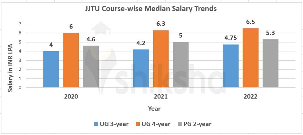 The course-wise median salary trends witnessed during JJTU UG and PG placements over the past three years are presented below: