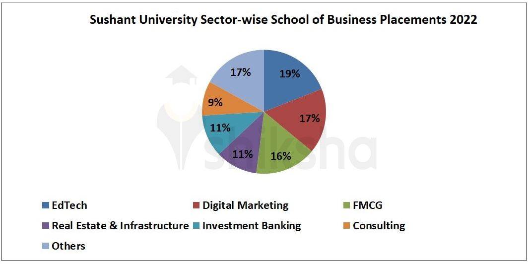 The sector-wise placement percentage recorded during Sushant University School of Business placements 2022 is presented below: