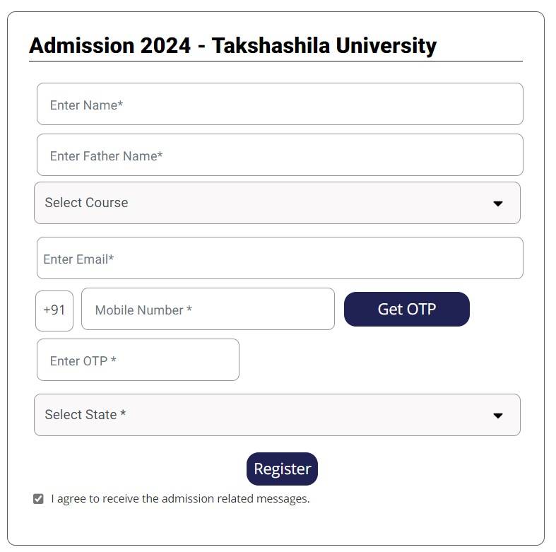 Takshashila University admissions are merit-based. Thus, aspirants' scores in the last qualifying examination are considered for selection. After selection, students need to pay the admission fee for seat confirmation. Eligible aspirants can further apply by filling out the Takshashila University application form:
