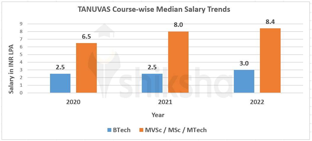 The course-wise median salary trends witnessed during TANUVAS placements over the past three years are presented below: