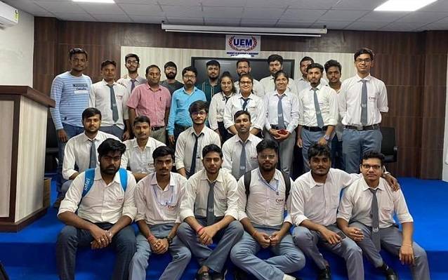 October 6, 2023: The Department of Electrical Engineering at the University of Engineering & Management (UEM), Jaipur, recently organised a "6 days Pre-Industrial Electrical Training" for B.Tech second- and third-year students in the EE and ECE departments at IEM, Kolkata. Students learned about the hands-on Training on: Automation (4.0), Renewable Energy Generation (PV plant), and DC protection, AC protection system, Induction motor starter panel DOL and Star Delta.