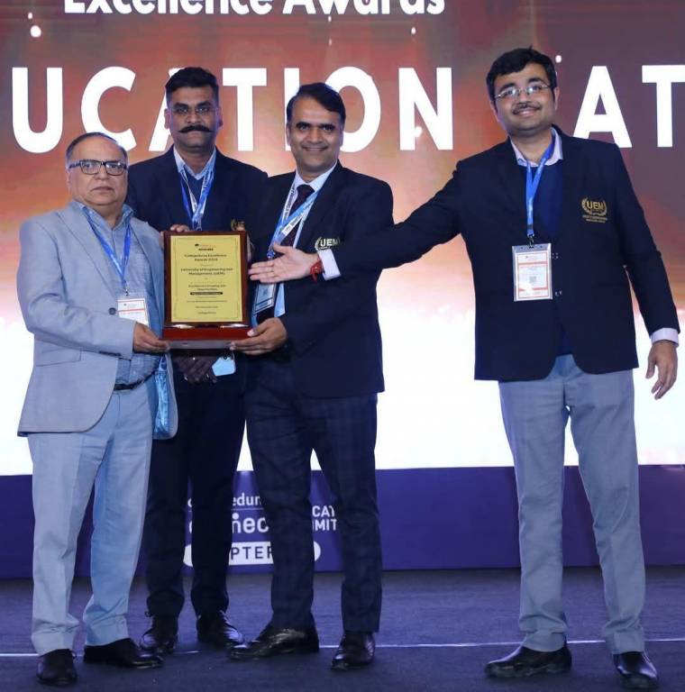 July 10, 2022: The University of Engineering & Management (UEM), Jaipur, received the Best Engineering Institute for Placements and Outcome-Based Education of the Year award at Rural & Urban Development Summit in New Delhi.