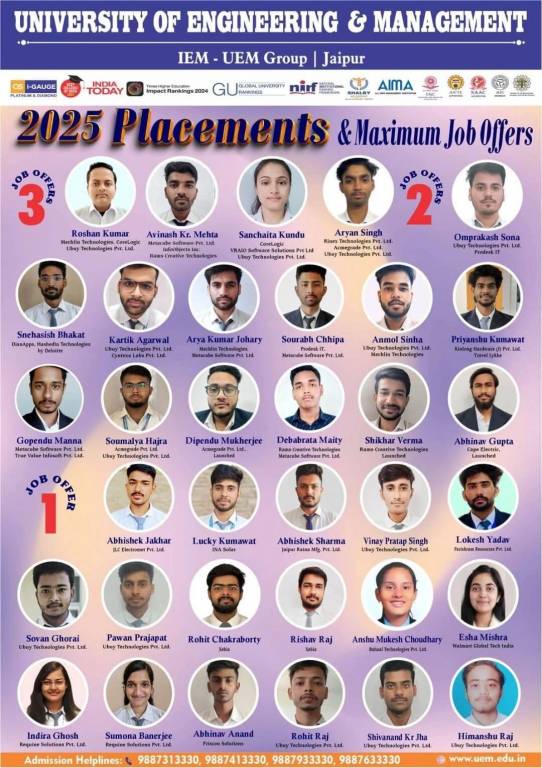 - UEM Jaipur Placements 2025: Highest Package, Average Package, Top Companies