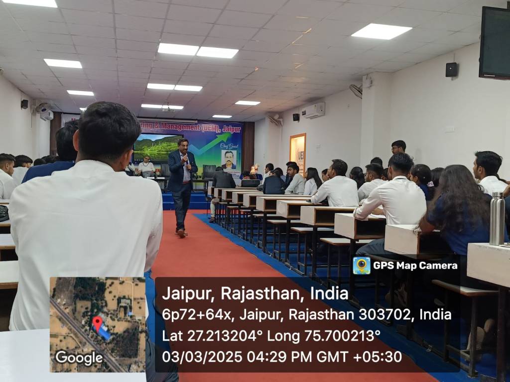 January 25, 2020: Taking into consideration both physical and mental health, UEM Jaipur conducted a guest lecture on “Implementing Indoor, Environment Quality Standards in Buildings and Workplaces” under India Green Building Council (IGBC). Students and faculty members of civil engineering and electrical engineering department were invited to attend this lecture. There were discussion related to Indoor Environment Quality which is correlated to indoor lifestyle. They both serve as important factors to ensure physical and mental fitness. This lecture was followed by IGBC achievements and also initiatives taken to make all buildings green.