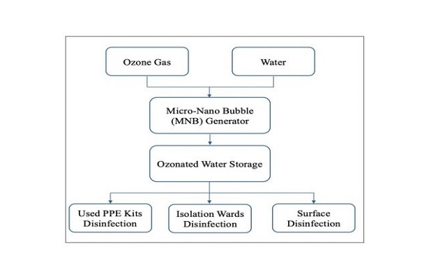 With its powerful oxidation capability and absence of harmful residue, the ozone micro-Nano-bubbles (MNBs) is a potential disinfectant. This technique against bacterial contamination was found to be successful. UPES is working towards the possibility of designing a similar prototype.