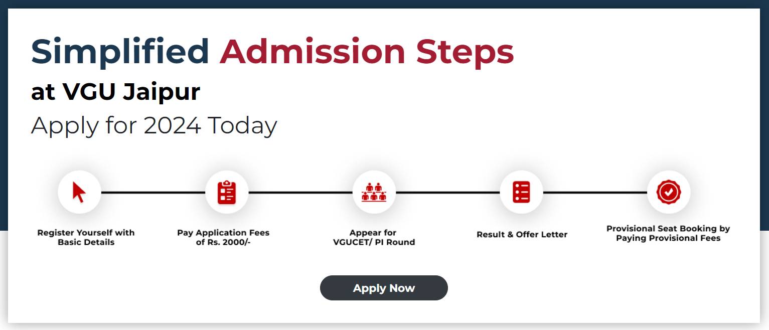 The Vivekananda Global University application form is available online only. The application fee of VGUCET is INR 2000. Applicants must pay Vivekananda Global University fee online through Debit/credit card, Internet banking or UPI. Candidates are advised to have all documents ready before filling VGUCET application form 2026. Applicants must fill in all information in Vivekananda Global University form carefully, as there will be no correction facility after registration process. For more details about the VGUCET application form 2026, candidates can refer to article below.